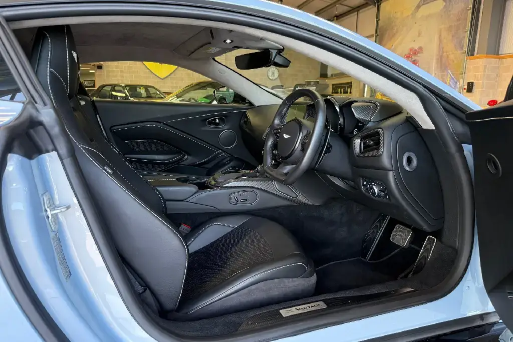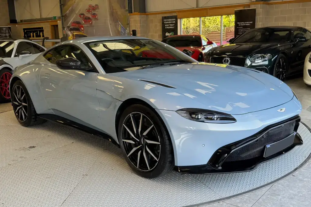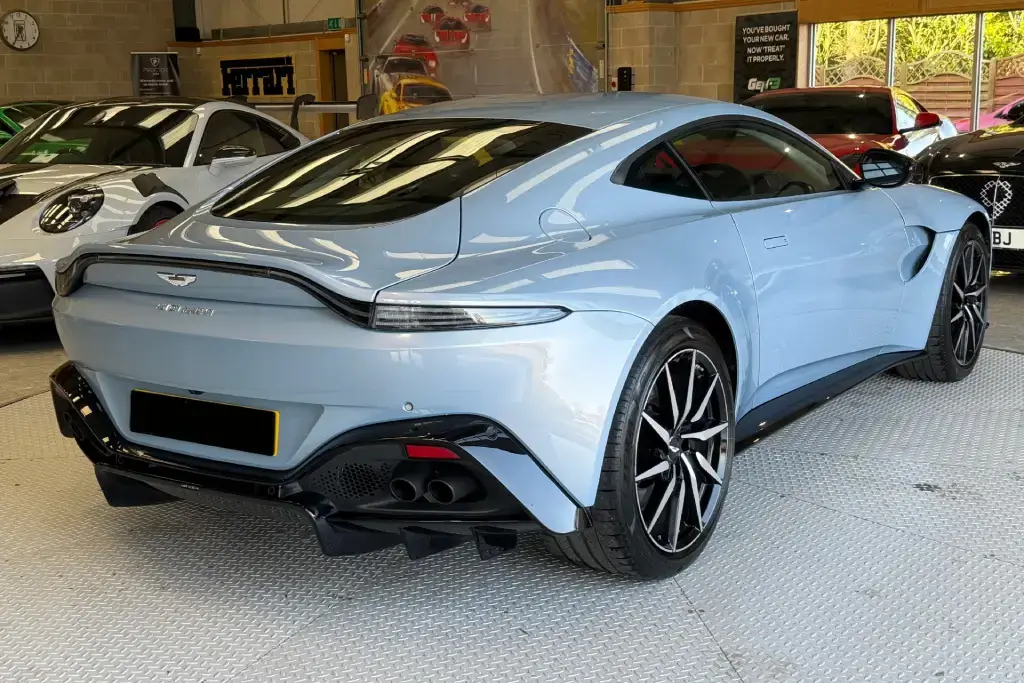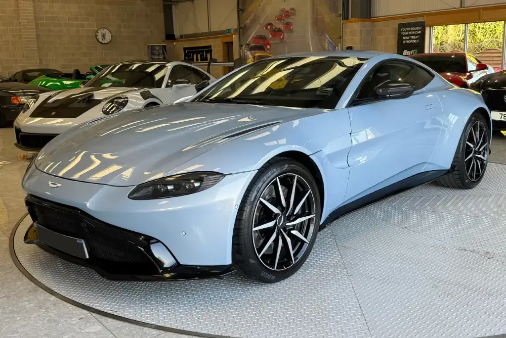 2020 70 Aston Martin Vantage 4.0 V8 Auto Euro 6 2dr finished in Mako Blue accompanied by Black Leather Upholstery.
