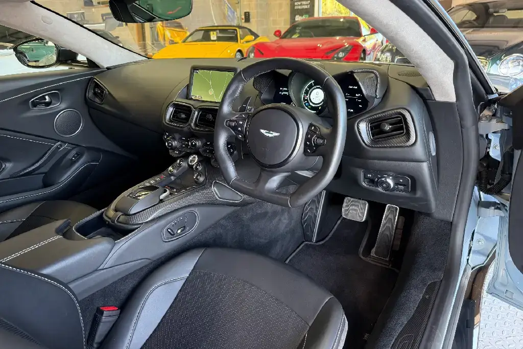 Features Include -20in Alloy Wheels – 10 Spoke Cast Wheel – Silver Diamond Turned, Brake Calipers – Black, Door Mirror Caps – Carbon Fibre, Alcantara – Phantom Grey, Caithness Leather – Obsidian Black, Heated Front Seats, Seat Heating-Cooling – Ventilated Seats, Navigation, Standard Features – ABS – Anti Lock Braking System, Airbag – Dual-Stage Driver, Airbag – Dual-Stage Front Passenger, Alarm and Immobiliser, Automatic Temperature Control with Dual Zone Climate Control, Blind Spot Monitoring, Bonnet Vents – None, Boot Carpet – Obsidian Black, Centre Console Open Stowage, DSC – Dynamic Stability Control, DTV – Dynamic Torque Vectoring, Decklid Insert – Exterior Body Colour, Door Mirror Caps – Exterior Body Coloured, Door Mirrors – Heated and Electrically Retractable, EBD – Electronic Brakeforce Distribution, Electric 8-way Adjustable Seats, Electric Parking Brake, Electric Steering Column Adjustment and Cruise Control, Electrically Controlled Exhaust, Electronic Differential – E-Diff, Exterior Body Pack – Graphite, Exterior Door Handles – Exterior Body Colour, Front Electric Windows, Front and Rear Parking Sensors, HBA – Hydraulic Brake Assist, Headlining – Micromesh, Infotainment – Aston Martin Audio, Interior Jewellery – Gloss Black and Satin Silver, LED High-Low Beam Headlamps, LED Tail Lights – Red, Manual Steering Column Adjustment, PTC – Positive Torque Control, Parking Aid – 360 Degree Camera, Parking Distance Display and Park Assist, Rear Diffuser Insert and Blades – Match to Exterior Pack, Side Gill – Exterior Body Coloured, Side Mirror Tilt Down on Reverse, Signature Full Width LED Tail Lamps, Sports Seats, Steering Wheel – Leather – Obsidian Black, Stitch – Match to Leather, Strathmore Leather and Alcantara Environment, Switchpack Facia – Glass Gloss Black, TC – Traction Control, Touch Pad Control, Trim Inlay – Gloss Black, Twin Stainless Steel Silver Exhaust Tailpipe Finish, Tyre Pressure Monitoring System, Underbonnet Cross Brace – Silver, Warning Triangle, Wheel Centre Caps – Colour Keyed to Wheel Finish, Window Surround – Bright.