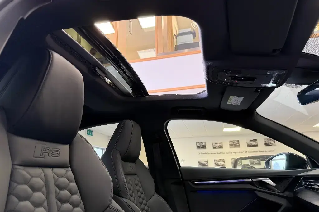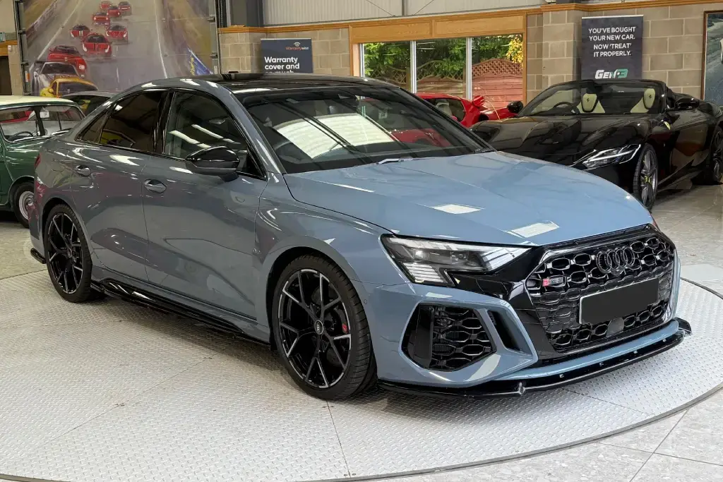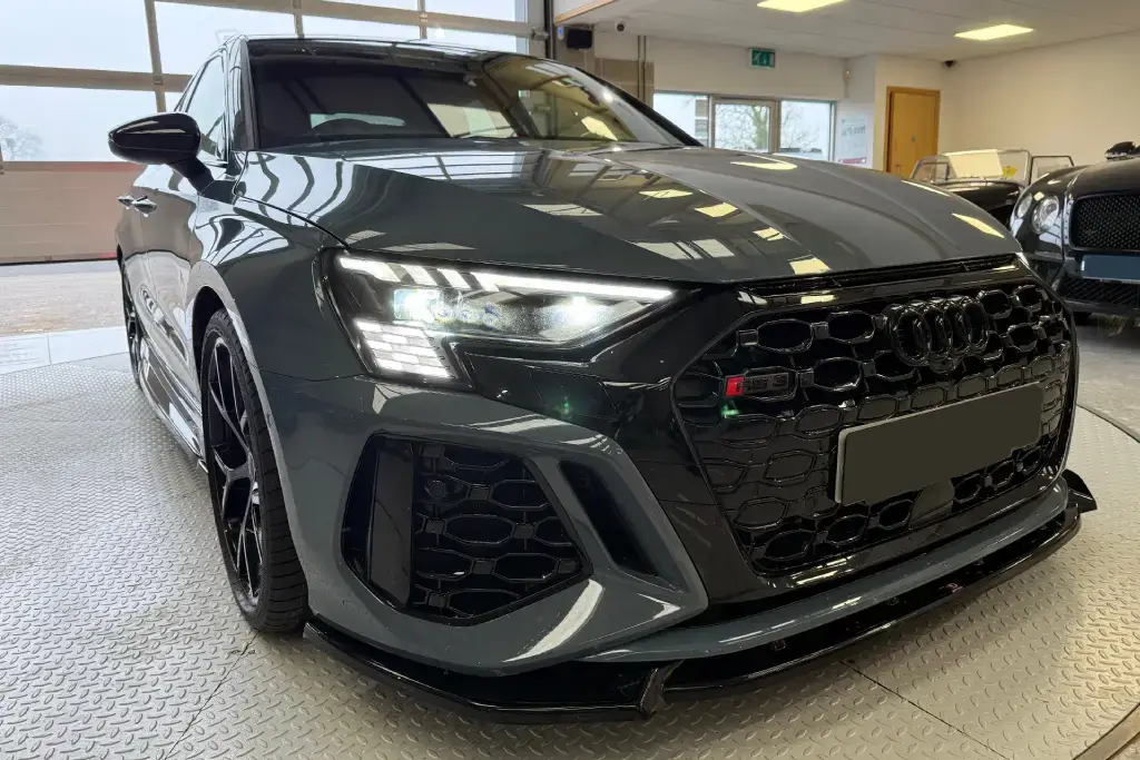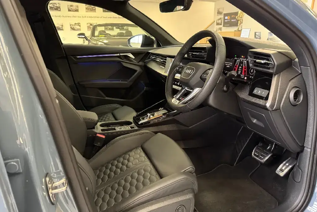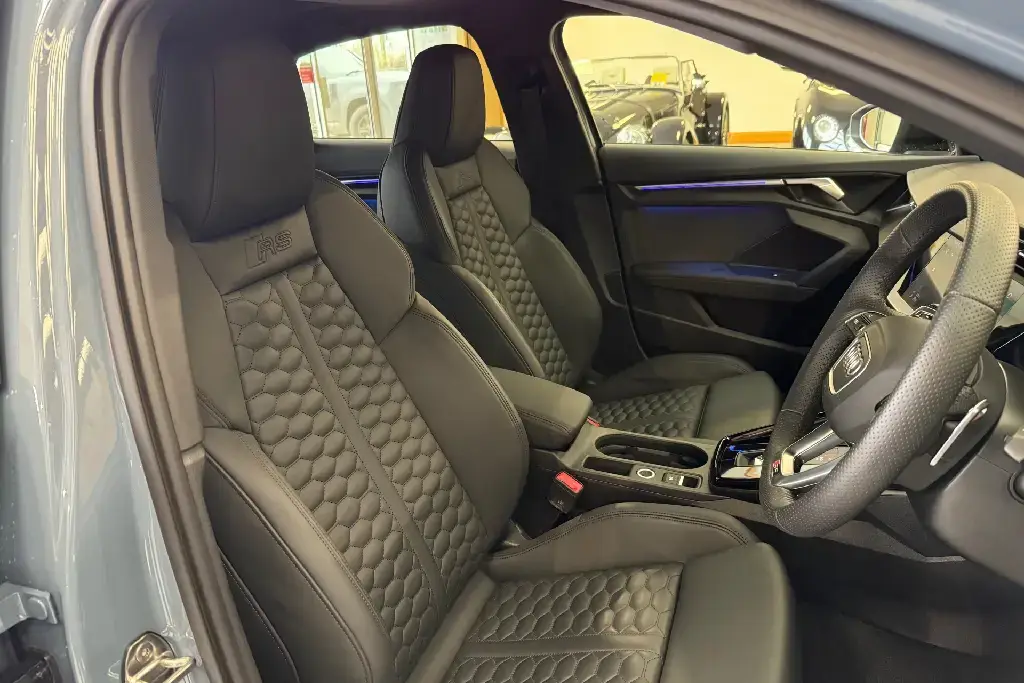 2024 24 Audi RS3 2.5 TFSI Vorsprung S Tronic quattro Euro 6 (s/s) 4dr finished in Kemora Grey accompanied by Black Honeycomb Leather Upholstery.