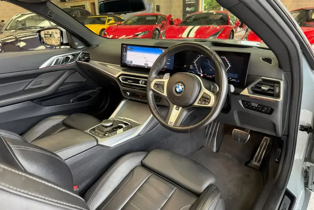 2024 73 BMW 4 Series 2.0 420i M Sport Auto Euro 6 (s/s) 2dr finished in Brooklyn Grey accompanied by Black Leather Upholstery.