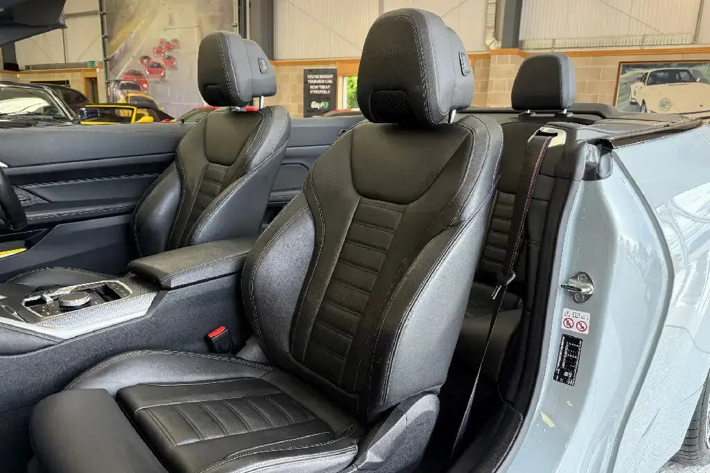 Features Include – M Sport Pro Package, Comfort Package, Loudspeaker System – Harman Kardon, Warm Air Collar, Wind Deflector, BMW Individual Lights – Shadowline, Steering Wheel – Heated, 19in Alloy Wheels – M Double Spoke Style – 797 – Bi-Colour Jet Black with Mixed Tyres, M Sport Brakes with Red Calipers, Vernasca Leather – Black with Grey Stitching, Vernasca Leather – Black with Blue Contrast Stitching, Soft-Top – Anthracite with Silver Fleck, Standard Features – Active Guard Plus, Air Conditioning – Automatic with Three-Zone, Alarm System, Ambient Lighting, Automatic Start-Stop Button, BMW Connected Package Professional, BMW ConnectedDrive Online Services, BMW Emblem on Engine Compartment Lid and Tailgate, BMW Kidney Grille with Mesh Grille – Front Side of the Nuggets in Matt Aluminium and Frame in Chrome High-Gloss, BMW Live Cockpit Professional, BMW iDrive, Battery in Luggage Compartment, Bumper System – Front and Rear, Centre Lock Switch, Condition Based Service, Crash Sensor, Cruise Control, Cup Holders in Centre Console – Front – 2 Cupholder Inserts with Clamping Elements – Inlay Matt Black, DAB Tuner, DSC – Dynamic Stability Control Plus, Door Sill Strips – M Sport Entry Sills, EPS – Electric Power Steering, Electric Memory Seats, Electric Vehicle Immobiliser, Electric Window, Electronic Differential Lock, Exhaust Tailpipe Finishers – Visible, Exterior Trim – High-Gloss Shadowline, Floor Mats – Velour, Folding Wing Mirrors with Auto-Dimming, Follow-Me-Home Function, Front Apron – Plastic in Body Colour, Gearshift Paddles, Glove Compartment – Illuminated, Headlight Beam-Throw Control – Automatic – Load Dependant Regulating Reaction – Dynamic Compensation of Braking Dive and Acceleration Squat, Headlining – Anthracite, Heat Protection – Sun Protection Glazing, Heads Up Display, Interior Rear-View Mirror with Automatic Anti-Dazzle Function, Interior Trim – Aluminium Tetragon, LED Front Foglights, LED Headlights, LED Rear Lights, Lashing Eyelets in Luggage Compartment, Luggage Compartment – Light, M Sport Exterior Styling, M Sport Leather Steering Wheel, M Sport Package, M Sport Suspension, Model Logo, Multifunction for Steering Wheel, Oil Sensor For Level and Grade, One-Piece Front Bumper Cover including Towing Eye Cover in Body Colour, Parking Assistant, Parking Brake – Electromechanical, Preparation For High-Beam Assistant, Shifting Point Display, Side Frame Decorative Moulding – Black Matt, Smartphone Integration, Speed Limiter, Split Folding Rear Seat – 40-20-40, Sport Seats – Front, Steering Column Adjustment, Sun Visors with Illuminated Vanity Mirrors and Ticket Holder, Toolkit Located in Luggage Compartment, Tyre Pressure Sensors, Variable Sport Steering, Washer Jets – Heated, Welcome Light, Window Recess Finisher – Black Matt.