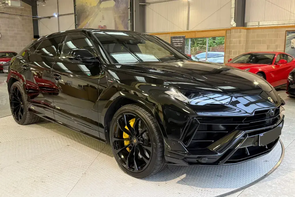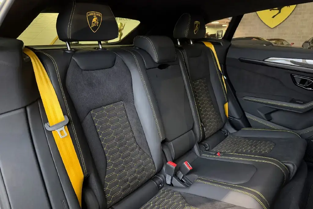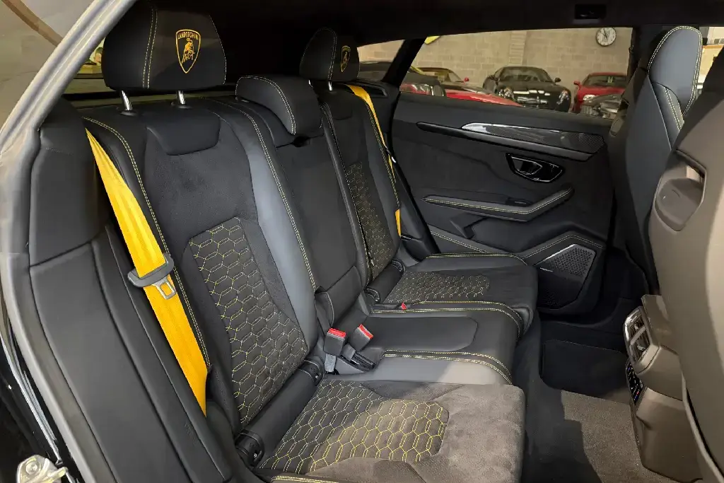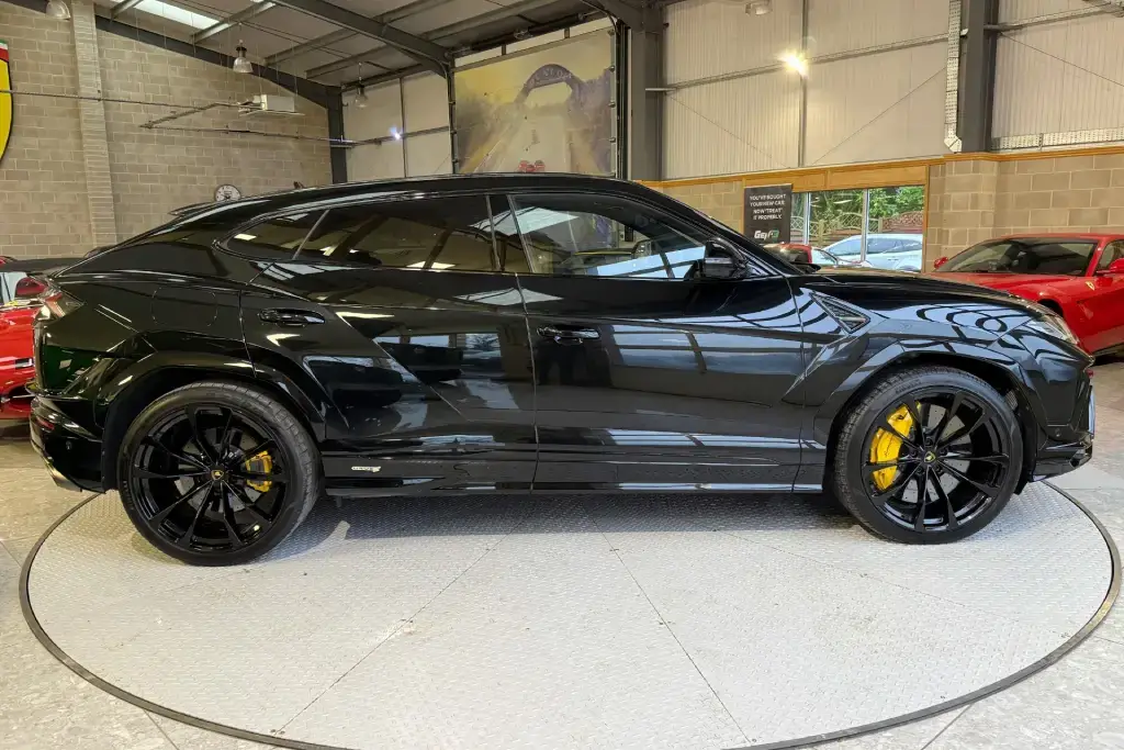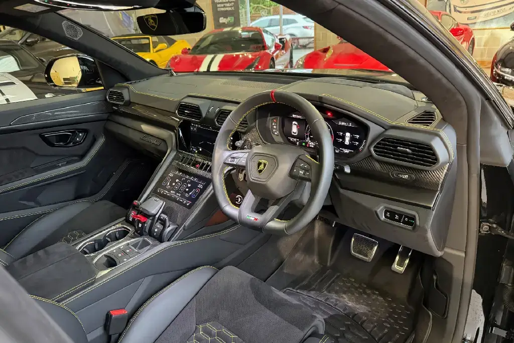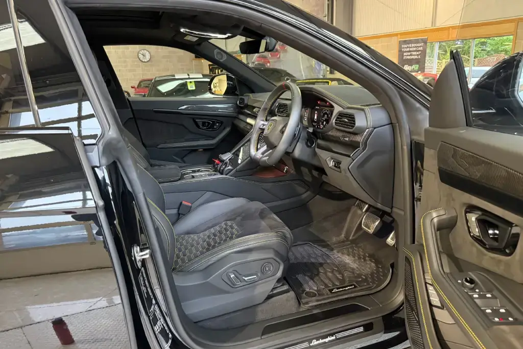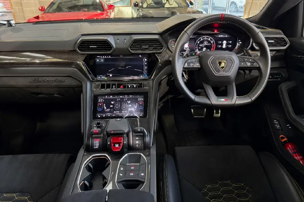 Features Include – 23in Alloy Wheels – Taigete Shiny Black, Brake Calipers – Yellow, Electric Panorama Roof, Style Package in High Gloss Black with Front Plastic Splitter – Ad Personam, Bonnet Air Vents in Shiny Black, Mirror Housings in High Gloss Black, Rear Lamborghini Logo in High Gloss Black – Ad Personam, Black Chrome Exhaust Tailpipes – Ad Personam, Alcantara Unicolour – Nero Ade, Q-Citura Interior on Alcantara, Giallo Taurus – Stitching, Embroidered Logo on Headrest, Seat Belts in Giallo Taurus, Sport Steering Wheel Full Leather with Dark Chrome Bezel and Red Marker Heated, Bang and Olufsen Advanced 3D Audio System, Ambient Light Package, Lamborghini ANIMA with Off-Road Modes, Small Interior Carbon Package, Interior Dark Package, Black Anodised Treatment on Aluminium Inserts, Privacy Glass – Acoustic and Double Glazing, Front and Rear Seats Heated, Parking Assistant Package with Remote Park Assist, Ventilated Front Seats, Massage Front Seats, Puddle Lights – Badge, Soft Door Close, Adaptive Cruise Control, Standard Features – ABS – Anti-lock Braking System, ASR – Anti Slip Regulation, Anti-Theft Alarm, Automatic Dual-Zone Air Conditioning System with Integrated Active Carbon Filter, Bluetooth, Cup Holder, DAB Radio, Daytime Running Lights – LED, Door Mirrors – Electrically Adjustable-Heated and Folding, EBD – Electronic Brake Distribution, ESC – Electronic Stability Control, Electric Front and Rear Windows, Electromechanical Power Steering, Electronic Traction Control, Head Up Display – HUD, Headlights – LED, Lamborghini Smartphone Interface – Apple Carplay and Android Auto, Navigation System, Rear Diffuser and Door Inserts in High Gloss Black, Remote Central Locking.