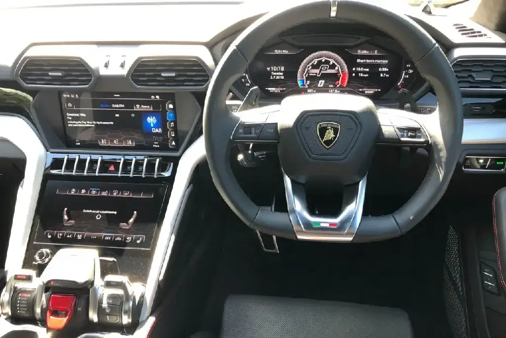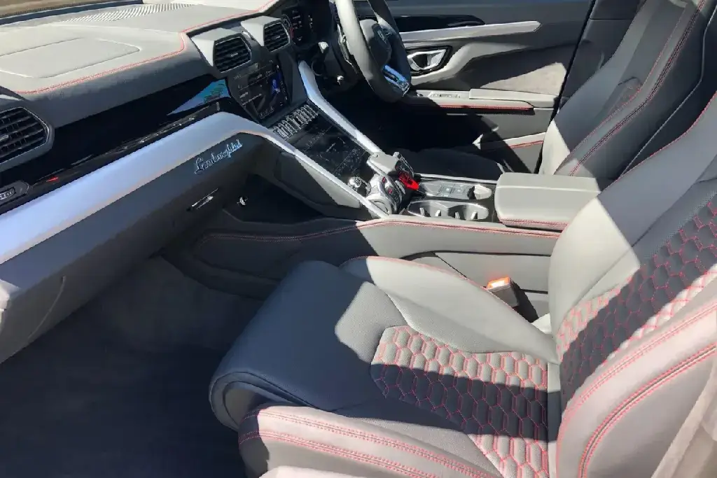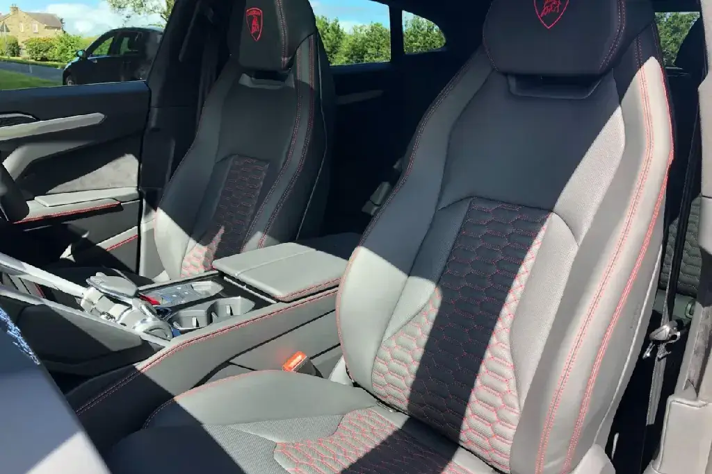 Nero Helene, Specification Including Nero Ade Q-citura Leather Trim, Q-citura On Leather Seats, Optional Stitching, Rear Seat Entertainment System, Bang & Olufsen Advanced 3D Sound System, Electric Panoramic Glass Sunroof, Carbon Package, Offroad Modes, Park Assistance Pack With Top View Camera, Black Matt Exhaust Tailpipes, Style Package – Shiny Black, Carbon Ceramic Brakes With Red Painted Callipers, 23″ Taigete Rims In Shiny Black Finish, Privacy Glass, Ambient Light Package, High Gloss Black Details, Black Anodised Trim On Aluminium Inserts, Optional Stitching On Steering Wheel, Multi Function Heated Steering Wheel In Perforated Leather, Embroidered Lamborghini Shield On Headrests, Vehicle Tracking System, Standard Equipment Includes Front And Rear Carbon-Ceramic Brakes, Four-Wheel Drive With Limited Slip Central Differential And Asymmetric/Dynamic Torque Distribution, Four-wheel Steering, Adaptive Air Suspension With Active Dampers, Anamia Selector For Strada, Sport, Corsa, Neve, Terra, Sabbia And Ego Modes.