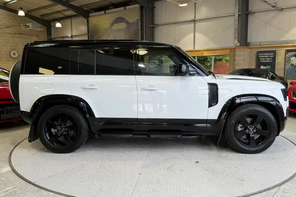 Features Include – Air Suspension Pack, Electrically Deployable Towbar, Extended Black Pack, Black Contrast Roof, Black Wide Arch Kit, Front/Rear Mudflaps, Side Steps, Privacy Glass, 20″ Gloss Black Alloys, Standard Features – 11.4in Touchscreen, 12V Socket in Loadspace, 14-Way Heated and Cooled Electric Memory Front Seats with 4-Way Manual Headrests, 2-Zone Automatic Climate Control, 20in Full Size Spare Wheel, 360 Degree Parking Aid, 3D Surround Camera, 40-20-40 Folding Rear Seats with Centre Armrest, ABS – Anti Lock Braking System, ACC – Adaptive Cruise Control, AHBA – Auto High Beam Assist, Airbags – Driver, Airbags – Front Passenger, Alpine Lights, Android Auto, Apple CarPlay, Assisted Tailgate with Soft Close, Automatic Headlight Levelling, Automatic Headlights and Rain Sensing Wipers, Blind Spot Assist, Brake Hold, CBC – Cornering Brake Control, Carpet Mats, Centre Console with Armrest, Centre High Mounted Stop Light, ClearSight Interior Rear View Mirror, Customer Configurable Autolock, DSC – Dynamic Stability Control, Digital Audio Broadcast Radio – DAB, Driver Condition Monitor, Durable Rubber Cabin Flooring, Durable Rubber Loadspace Flooring, EBA – Emergency Brake Assist, EBD – Electronic Brake-Force Distribution, EPAS – Electric Power Assisted Steering, ETC – Electronic Traction Control, Electric Cabin Pre-conditioning, Electric Parking Brake, Electric Windows with One-Touch Open-Close and Anti-Trap, Electrically Adjustable Steering Column, Emergency Braking, Follow Me Home Lighting, Footwell Lights – Front, Front Airbags with Passenger Seat Occupant Detector, Front Fog Lights, Front Passenger Seat ISOFIX, Glovebox Storage, HDC – Hill Descent Control, Headlining – Light Oyster Morzine, Heated Electric Power Fold Door Mirrors with Approach Lights and Auto-dimming Driver Side, Heated Rear Window with Timer, Heated Steering Wheel, Heated Windscreen, Hill Launch Assist, Interactive Driver Display, Intrusion Sensor, Keyless Entry, LED Tail Lights, Lane Keep Assist, Leather Gearshift, Loadspace Cover, Loadspace Hooks, Locking Wheel Nuts, Low Traction Launch, Meridian Sound System, Meridian Surround Sound System, Power Operated Child Locks, Premium Cabin Lighting, Premium LED Headlights with Signature DRL, Puddle Lights, Push Button Start, RSC – Roll Stability Control, Rear Collision Monitor, Rear Fog Lights, Rear ISOFIX, Rear Reading Lights, Rear Traffic Monitor, Rear Wash Wiper, Seats – Rear Centre Head Restraint, Side-Hinged Tailgate, Signature Graphic – with Interior Storage, Sliding Panoramic Roof, Standard Leather Steering Wheel, Sun Visors – Illuminated Vanity Mirrors, TPMS – Tyre Pressure Monitoring System, TSA – Trailer Stability Assist, Terrain Response, Traffic Sign Recognition and Adaptive Speed Limiter, Trip Computer, Twin Front Cupholders with Cover, Twin Speed Transfer Box – High-Low Range, Wade Sensing.