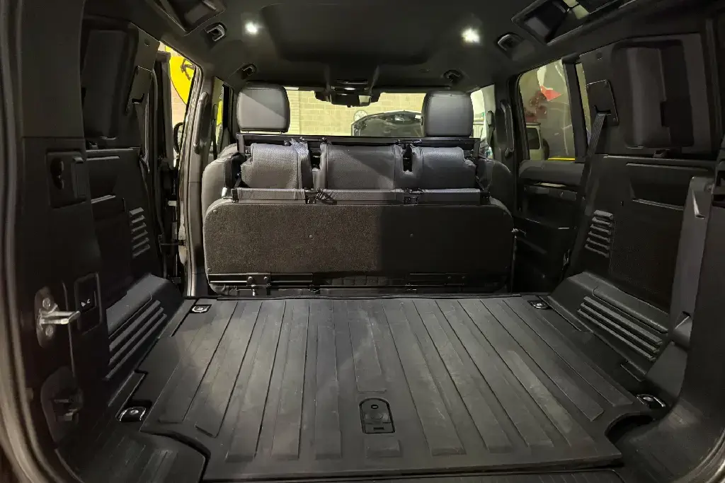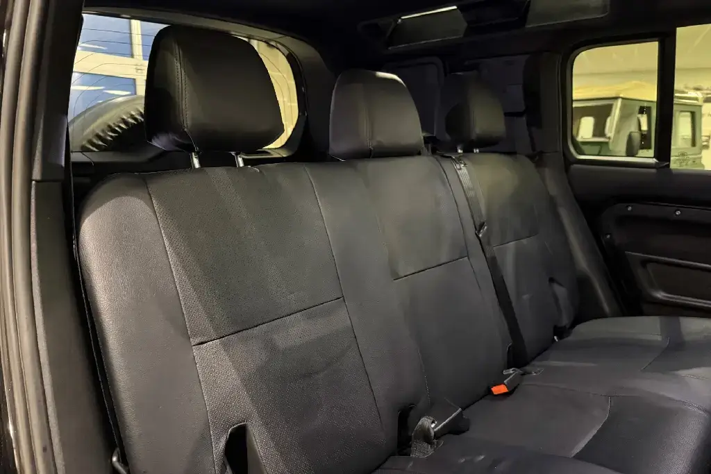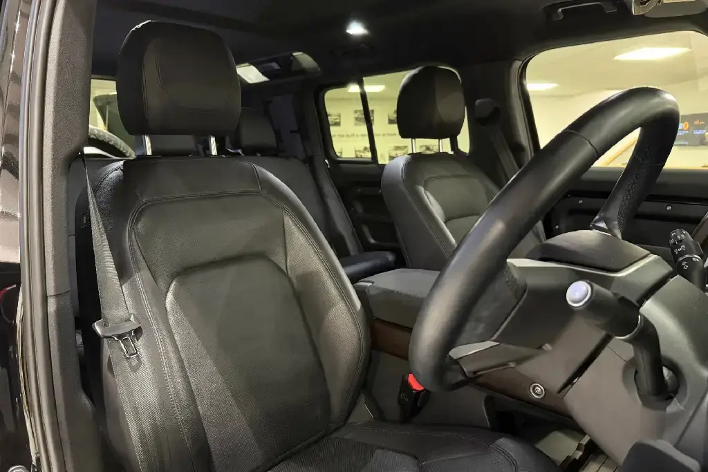Features Include – Blind Spot Assist, 22 Inch Gloss Black Alloy Wheels, Windsor Leather – Ebony with Ebony Interior, Rear Seat Conversion, Exterior Wrap – Grey, Side Steps, Mud Flaps, Spare Wheel Cover, Heated Steering Wheel, Red Brake Callipers, Electrically Deployable Towbar, LESS Roof Rack or Rails, Standard Features – 12-Way Heated – Electric Memory Front Seats with 2-Way Manual Headrests, 2-Zone Automatic Climate Control, 20in Full Size Spare Wheel, 360 Degree Parking Aid, 3D Surround Camera, Additional Lashing Points, Airbags – Front Passenger, All Season Tyres, Alpine Lights, Android Auto, Apple CarPlay, Assisted Tailgate with Soft Close, Automatic Headlight Levelling, Automatic Headlights and Rain Sensing Wipers, Brake Hold, Brake Pad Wear Indicator, Centre Console with Armrest, Centre High Mounted Stop Light, ClearSight Interior Rear View Mirror, Core Exterior Pack, Cross Car Beam in Light Grey Powder Coat Brushed Finish, Cruise Control and Speed Limiter, DSC – Dynamic Stability Control, Digital Audio Broadcast Radio – DAB, Driver Condition Monitor, Durable Rubber Cabin Flooring, Durable Rubber Loadspace Flooring, ETC – Electronic Traction Control, Electric Cabin Pre-conditioning, Electric Parking Brake, Electric Windows with One-Touch Open-Close and Anti-Trap, Exterior Signage Panel, Follow Me Home Lighting, Footwell Lights – Front, Front Fog Lights, Front Passenger Seat ISOFIX, Glovebox Storage, HDC – Hill Descent Control, Heated Electric Power Fold Door Mirrors with Approach Lights and Auto-dimming Driver Side, Heated Rear Window with Timer, Heated Windscreen, High-Sided Rubber Mats, Hill Launch Assist, Interactive Driver Display, Intrusion Sensor, Keyless Entry, LED Tail Lights, LESS Wireless Charger, Lane Keep Assist, Locking Wheel Nuts, Low Traction Launch, Manually Adjustable Steering Column, Meridian Sound System, Online Pack with Data Plan, Pivi Pro – Connected, Power Operated Child Locks, Premium LED Headlights with Signature DRL, Heads Up Display, Privacy Glass, Push Button Start, RSC – Roll Stability Control, Rear Fog Lights, Rear Reading Lights, Rear Traffic Monitor, Rear Wash Wiper, Seat Belt Reminder, Secure Tracker (12 Month Subscription From New), Standard Interior, Standard Roof, Sun Visors – Illuminated Vanity Mirrors, TPMS – Tyre Pressure Monitoring System, TSA – Trailer Stability Assist, Terrain Response, Traffic Sign Recognition and Adaptive Speed Limiter, Trip Computer, Twin Front Cupholders, Twin Speed Transfer Box – High-Low Range, Upgraded Loadspace LED Lighting, Wade Sensing.