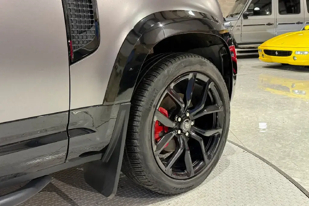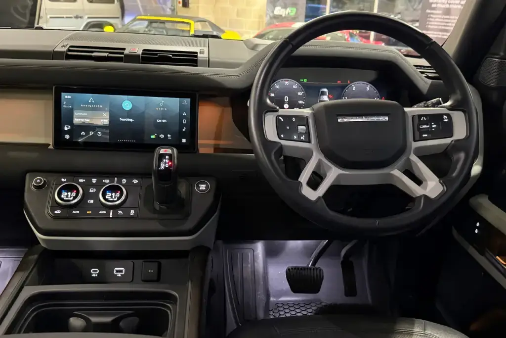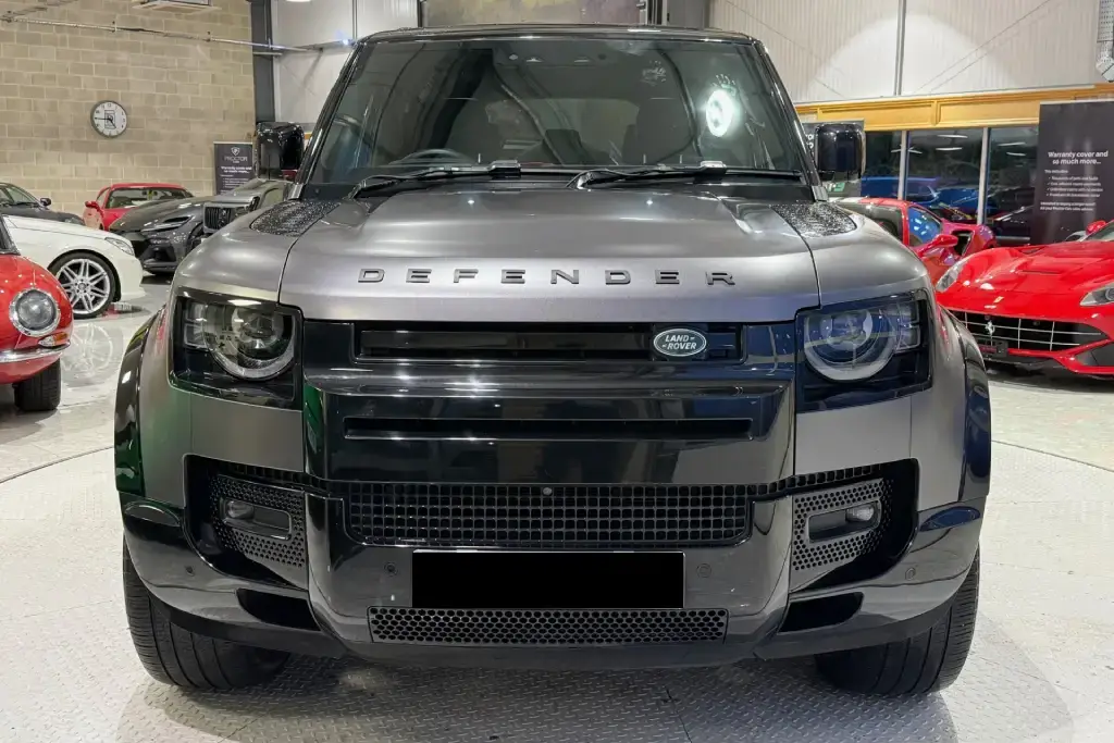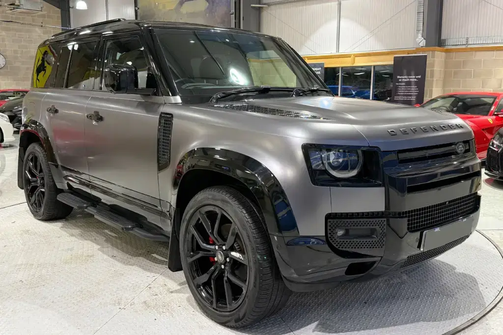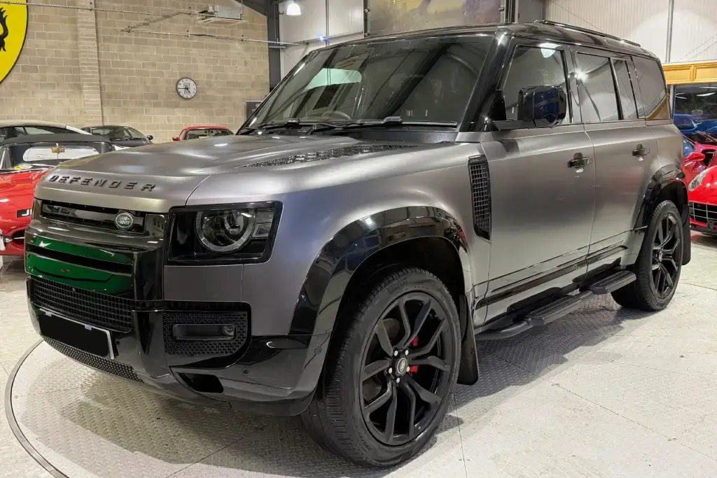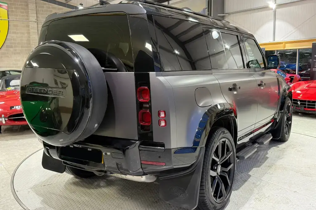2023 23 Land Rover Defender 110 3.0 D250 MHEV SE Hard Top SUV Auto 4WD MWB Euro 6 (s/s) 5dr finished in Santorini Black with Satin Grey Wrap accompanied by Black Leather Upholstery.