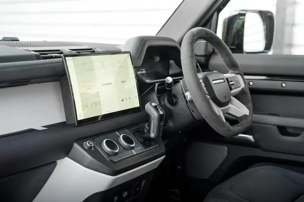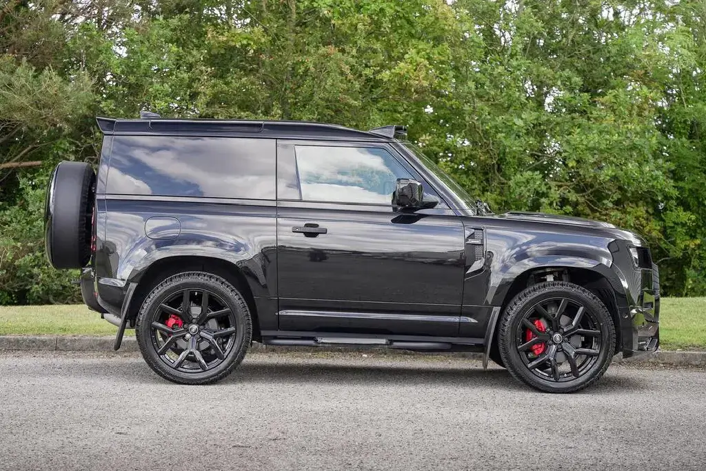 Sporting a full Hunter Conversion to include but not limited to: Front Bumper with LED Light Bar, 22″ Alloys with Red Brake Calipers, Wide Arches, Bonnet Vents, Side Steps, Roof Mounted LED Light Bar, LED Side Vents, Rear Spoiler, Exhaust Tips. Finished in Santorini Black with Black Leather Upholstery. Factory Options: Heated Seats, 360 Degree Cameras, Apple CarPlay/Android Auto, Heated Alcantara Steering Wheel, Wade Sensing. Further Specification: Sat Nav, Bluetooth, DAB Radio, Cruise Control, Auto Lights/Wipers/Climate.