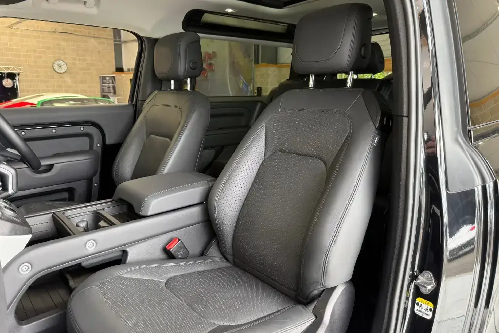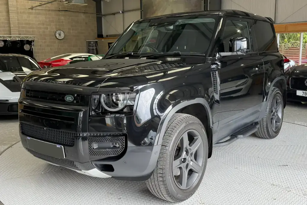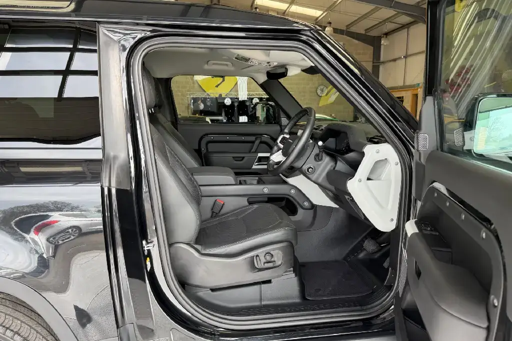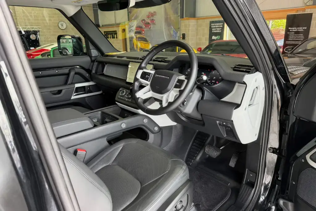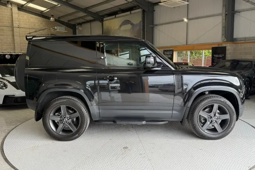 2024 74 Land Rover Defender 90 3.0 D250 MHEV HSE Auto 4WD Euro 6 (s/s) 3dr finished in Black accompanied by Black Leather Upholstery.