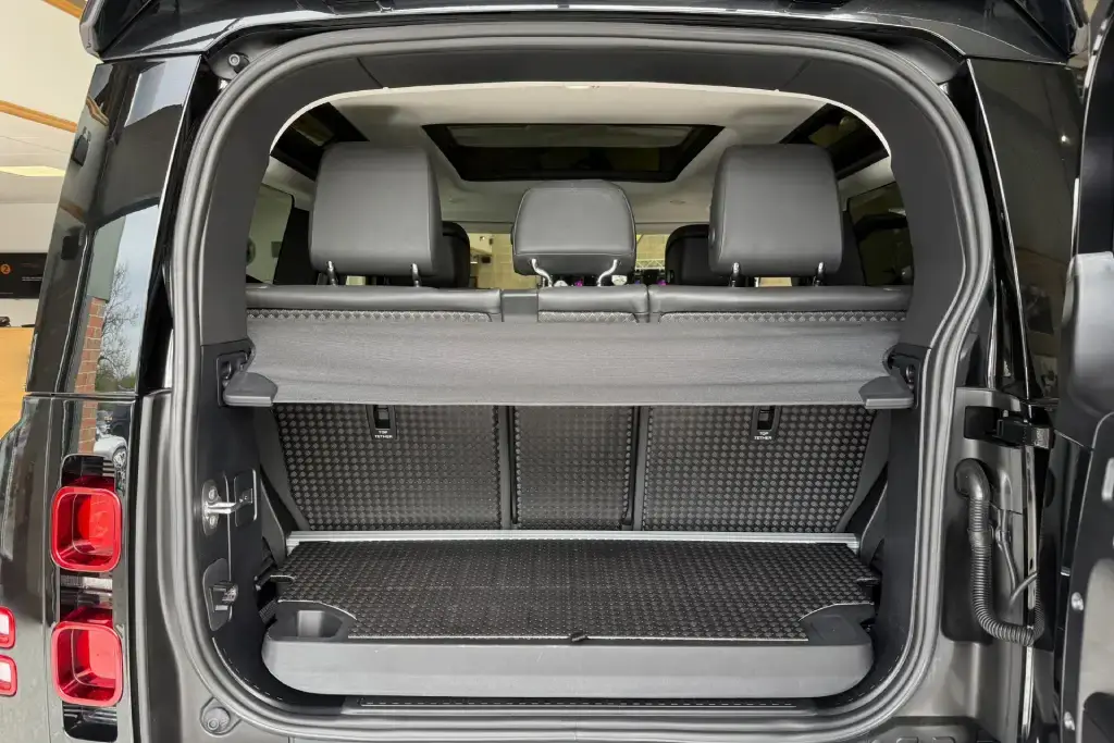 Features Include – Black Pack, 90 Bonnet Decal, Side Steps – Black, Front/Rear Mudflaps, Roof Spoiler, Spare Wheel Cover, Rear Bumper Load Protector, Electric Deployable Towbar, Standard Features – 11.4in Touchscreen, 12V Socket in Loadspace, 14-Way Heated and Cooled Electric Seats with Driver Memory and 2-Way Manual Headrests, 2-Zone Automatic Climate Control, 20in Full Size Spare Wheel, 360 Degree Parking Aid, 3D Surround Camera, 40-20-40 Folding Rear Seats with Centre Armrest, ABS – Anti Lock Braking System, ACC – Adaptive Cruise Control, AHBA – Auto High Beam Assist, All Season Tyres, Alpine Lights, Android Auto, Apple CarPlay, Auto-Dimming Interior Rear View Mirror, Automatic Headlight Levelling, Automatic Headlights and Rain Sensing Wipers, Blind Spot Assist, Brake Hold, Brake Pad Wear Indicator, CBC – Cornering Brake Control, Carpet Mats, Centre Console with Armrest, Centre High Mounted Stop Light, Coil Suspension, Customer Configurable Autolock, DSC – Dynamic Stability Control, Digital Audio Broadcast Radio – DAB, Driver Condition Monitor, Durable Rubber Cabin Flooring, Durable Rubber Loadspace Flooring, EBA – Emergency Brake Assist, EBD – Electronic Brake-Force Distribution, EPAS – Electric Power Assisted Steering, ETC – Electronic Traction Control, Electric Cabin Pre-conditioning, Electric Parking Brake, Electric Windows with One-Touch Open-Close and Anti-Trap, Electrically Adjustable Steering Column, Emergency Braking, Extended Leather Upgrade, Flat Loadspace Floor Tray, Follow Me Home Lighting, Footwell Lights – Front – Full specification above.