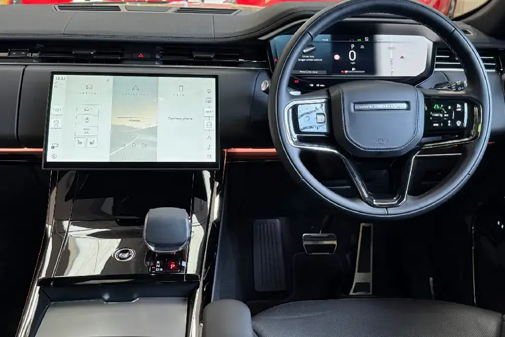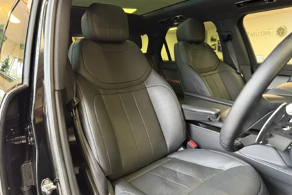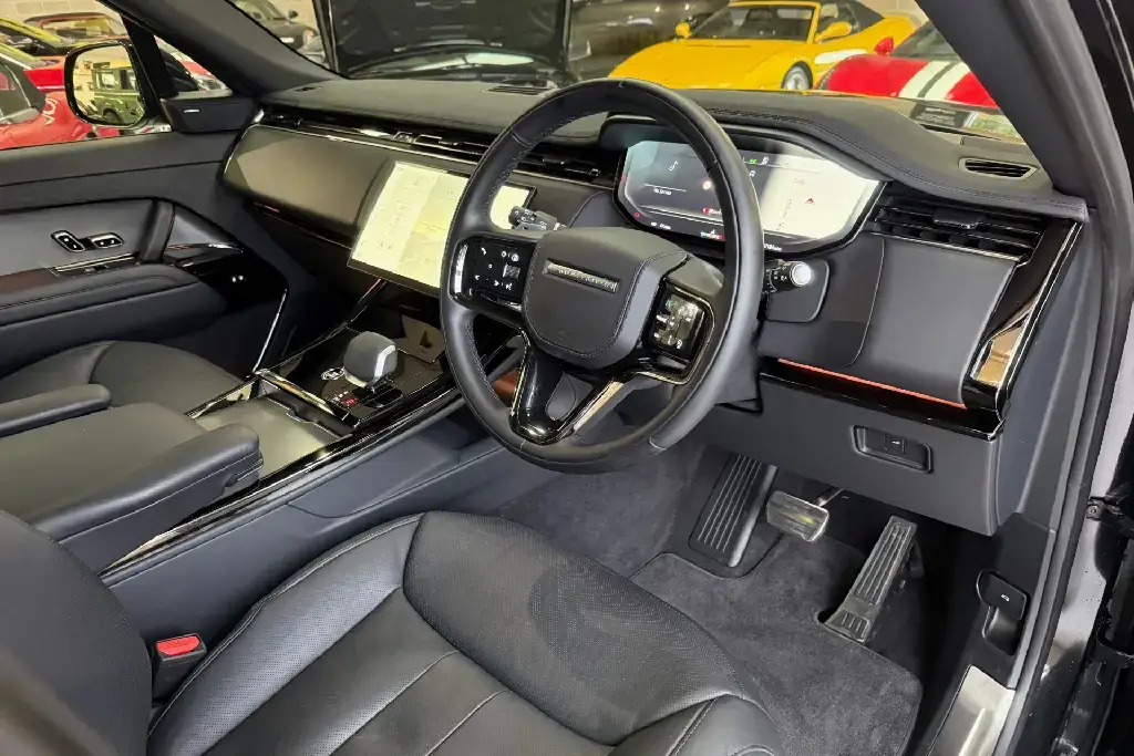 Features Include – Perforated Windsor Leather – Ebony with Ebony Interior, Side Steps, Mud Flaps, Rear Heated Seats, Red Brake Callipers, Standard Features – 20-Way Electric Heated Memory Front Seats with Heated Power Recline Rear Seats, 22in Alloy Wheels – SV Bespoke 5131 Style – Satin Black with Gloss Black Contrast, 3D Surround Camera, ABS – Anti Lock Braking System, ATPC – All Terrain Progress Control, Adaptive Cruise Control with Steering Assist, Adaptive Dynamics, Auto-Dimming Interior Rear View Mirror, Automatic Access Height, Automatic Headlight Levelling, Automatic Headlights, Black Exterior Pack, Blind Spot Assist, Bluetooth Connectivity, Bright Metal Pedals, CBC – Cornering Brake Control, Carpet Mats, Centre Console with Armrest, Centre High Mounted Stop Light, Configurable Auto Lock, Configurable Single Point Entry, DAB – Digital Audio Broadcast, DSC – Dynamic Stability Control, Driver Condition Response, Dynamic Air Suspension, Dynamic Exterior Styling, EBA – Emergency Brake Assist, ETC – Electronic Traction Control, Ebony Headlining, Electric Windows with One-Touch Open-Close and Anti-Trap, Electrical Towing Preparation, Emergency Braking, Extended Leather Upgrade, Fine Brushed Aluminium Finisher, Fixed Panoramic Roof, Flush Deployable Door Handles, Front Airbags with Passenger Seat Occupant Detector, Front and Rear Cupholders, Front and Rear Grab Handles, Front and Rear Parking Aid, Gearshift Paddles, HDC – Hill Descent Control, Headlight Powerwash, Heated Electric Power Fold Memory Door Mirrors with Approach Lights and Auto-Dimming Driver Side, Heated Rear Window, Heated Steering Wheel, Heated Washer Jets, Heated Windscreen, Hill Launch Assist, Illuminated Aluminium Treadplates with Range Rover Script, Interactive Driver Display, Intrusion Sensor, Keyless Entry, LED Tail Lights, Lane Keep Assist, Locking Wheel Nuts, Low Traction Launch, Luggage Tie-Downs in Loadspace, Meridian Sound System, Multi-Function Steering Wheel, Occupant Protection Assist, Online Pack with Data Plan, Open Differential with Torque Vectoring by Braking, Pivi Pro – Connected, Pixel LED Headlights with Signature DRL, Power Operated Child Locks, Powered Single-Piece Tailgate, Privacy Glass, RSC – Roll Stability Control, Rain Sensing Windscreen Wipers, Rear Animated Directional Indicators, Rear Centre Armrest, Rear Collision Monitor, Rear Traffic Monitor, Rear Wash Wiper, Red Brake Calipers, Seat Backboard – PVC, Secure Tracker Pro (36 Month Subscription From New), Side Repeater Indicators in Mirror, Single Speed Transfer Box – High Range Only, Sun Visors – Illuminated Vanity Mirrors, TPMS – Tyre Pressure Monitoring System, TSA – Trailer Stability Assist, Terrain Response 2 including Wade Programme, Traffic Sign Recognition and Adaptive Speed Limiter, Two-Zone Climate Control, Tyre Repair System, Winter Wiper Park Position, Wireless Android Auto, Wireless Apple CarPlay, Wireless Device Charging.