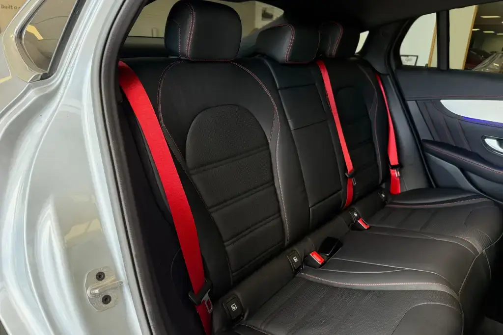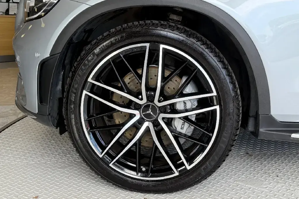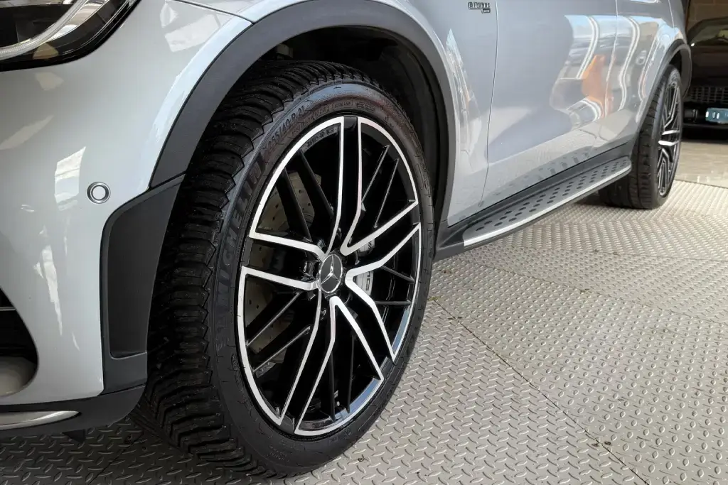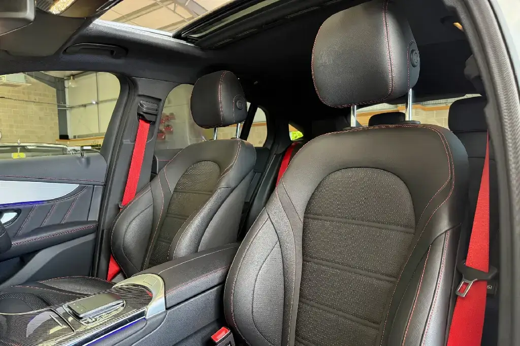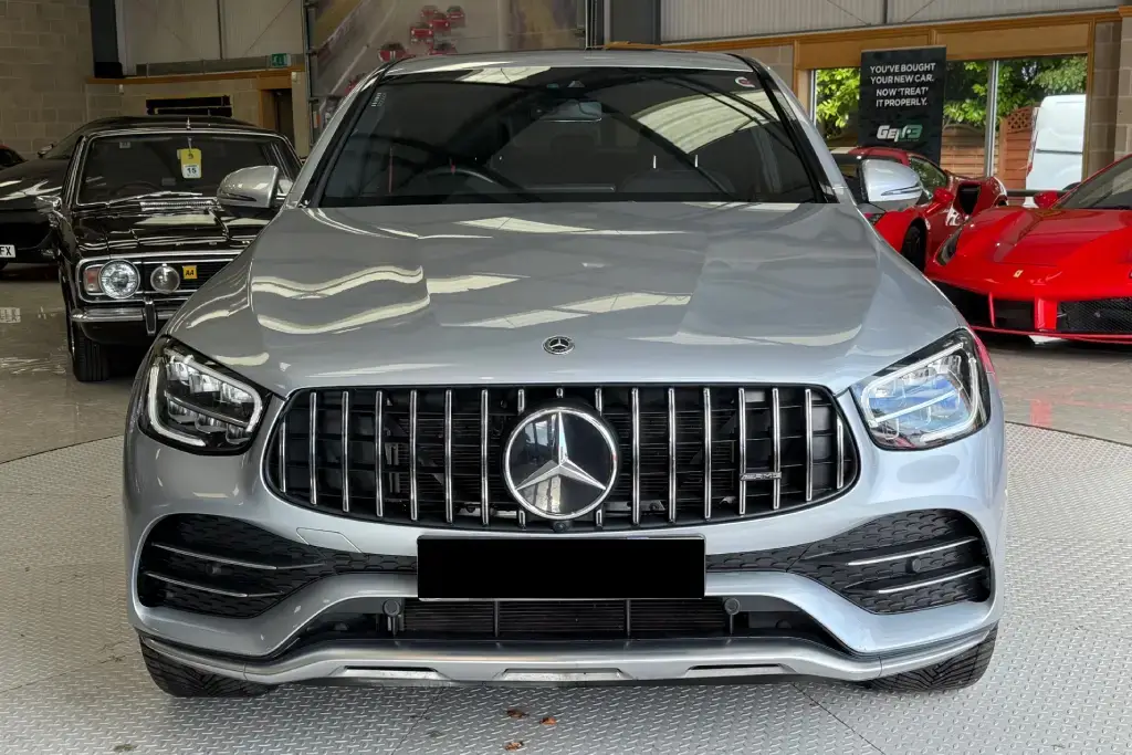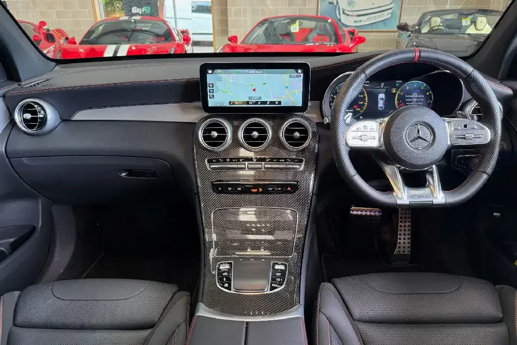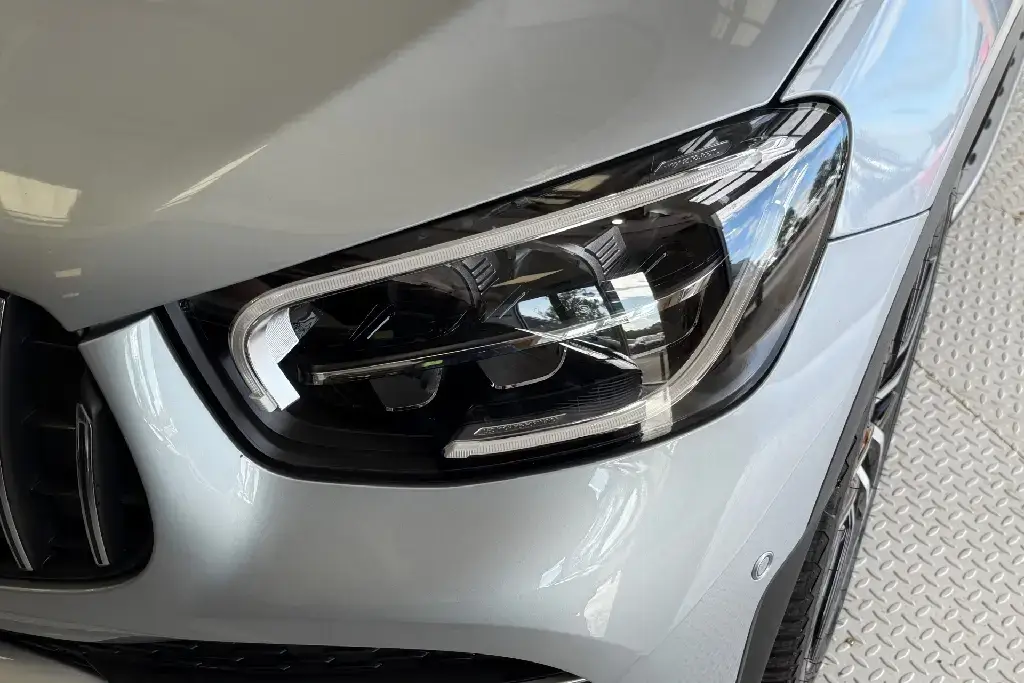 2023 73 Mercedes-Benz GLC 3.0 GLC43 V6 AMG (Premium Plus) Coupe G-Tronic+ 4MATIC Euro 6 (s/s) 5dr finished in Iridium Silver Metallic accompanied by Black Leather Upholstery.