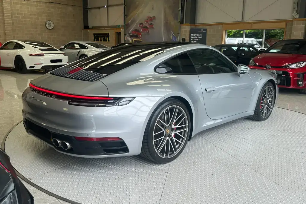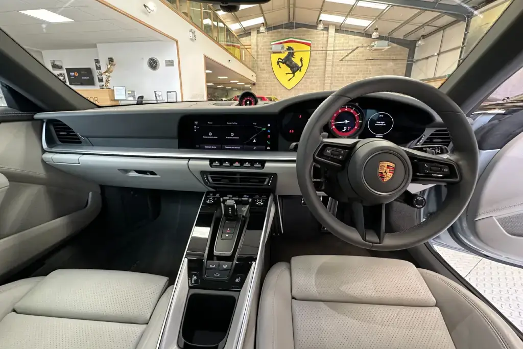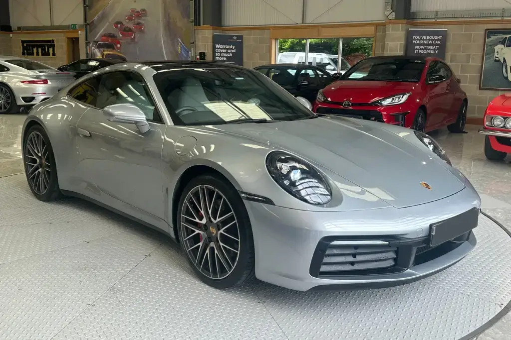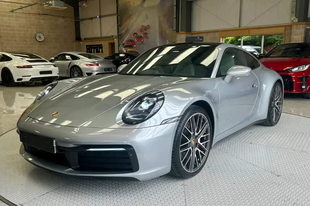 2021 21 Porsche 911 3.0T 992 Carrera 4S PDK 4WD Euro 6 (s/s) 2dr finished Dolomite Silver Metallic in accompanied by Slate Grey Leather Upholstery.
