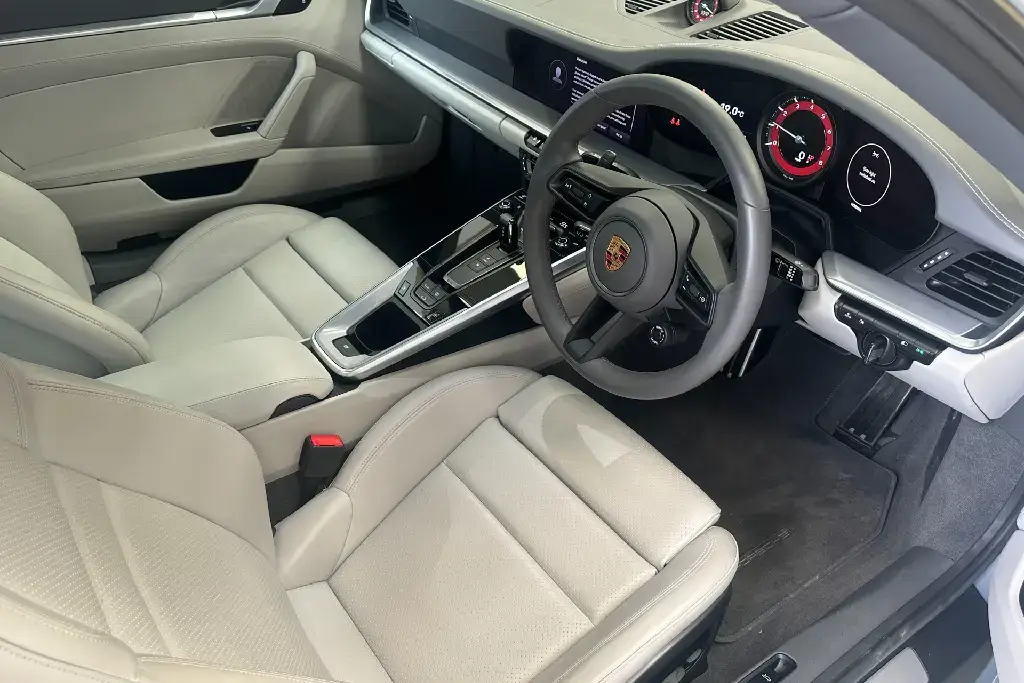 Features Include – Rear – Axle Steering, Power plus Steering, Wheel Centre Set With Full Colour Crest, Exclusive Design Fuel Filler Cap, Electric Slide/Tilt Glass Sunroof, Porsche Crest On Headrests, Windscreen With Grey Top Tint, Privacy Glass, Brushed Aluminium Interior Package, Mirror Bases Painted In Exterior Colour, Electric Folding Exterior Mirrors, Sports Chrono Package, Rev Counter In Guards Red, Salt Belts In Crayon, Auto Dimming Rear View Mirror, Sport Seats – 14 Way Electric, Porsche Logo LED Door Lights, Sports Chrono Stopwatch Instrument Dials In Guard Red, Standard Features – 10.9in Centre Display, 20in Front 21in Rear Alloy Wheels – Carrera S, Auto-Deployed Rear Spoiler, Automatic Headlight Activation including Welcome Home Lighting, Cruise Control, Digital Radio, Door Sill Guards – Model Designation Logo, Electric Parking Brake, Electromechanical Power Brake, Engine Compartment Cover Grille with Vertical Slats in Silver Colour – High-Gloss, Exterior Mirrors on Door Waist Rails – Electrically Adjustable and Heatable – Aspherical on Drivers Side, Green Tinted Thermally Insulated Glass, Instrument Cluster with Central Analogue Rev Counter – Two 7in TFT Display, Intelligent Lightweight Construction in Aluminium-Steel-Composite Construction, Interior Trim Package in Diamar Dark Silver, McPherson-Strut Suspension with Anti-Roll Bar at Front, Model Designation on Rear Trim in Silver Colour – High-Gloss, Multi-Link Suspension with Anti-Roll Bar at Rear, Porsche Active Suspension Management, Porsche Communication Management.