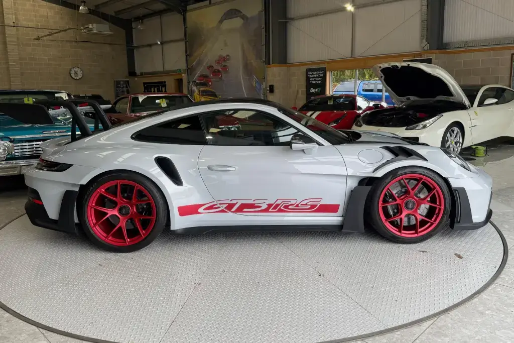 2024 74 Porsche 911 4.0 992 GT3 RS PDK Euro 6 (s/s) 2dr finished in Arctic Grey accompanied by Black Leather Upholstery.