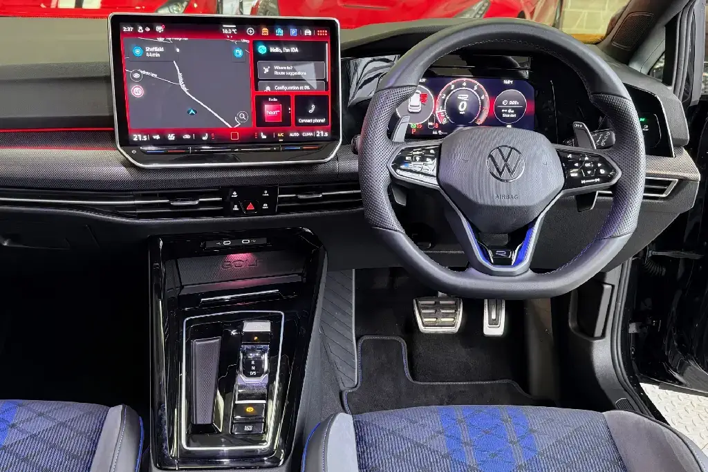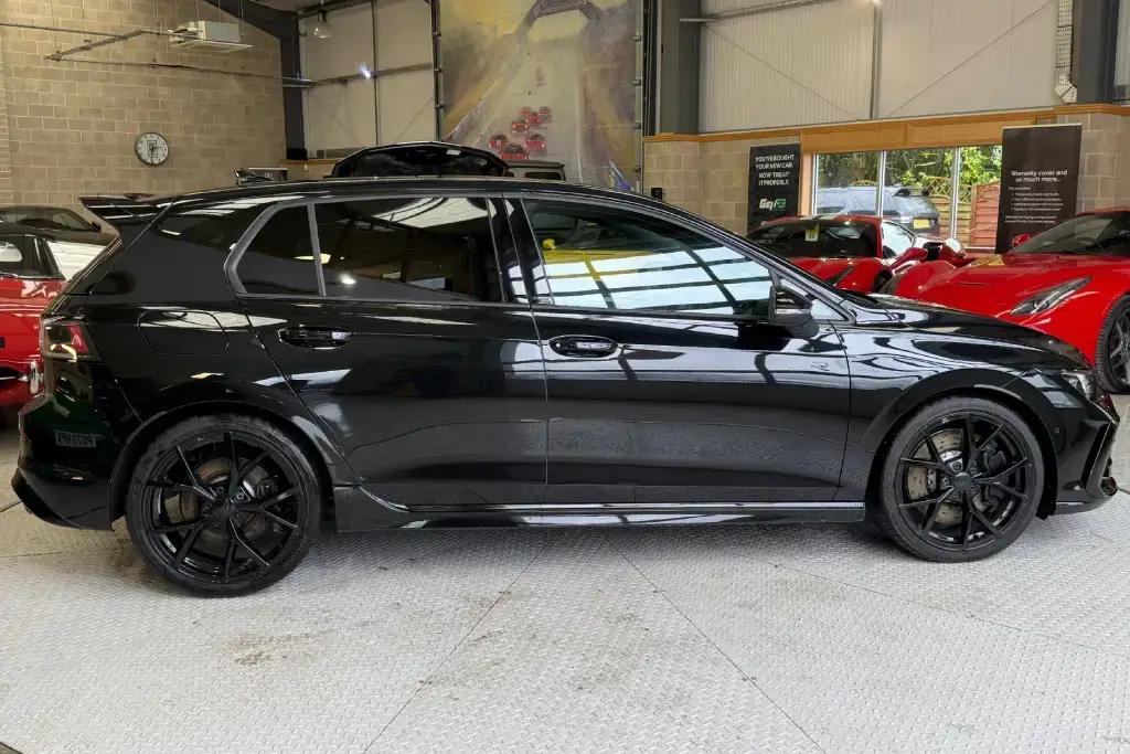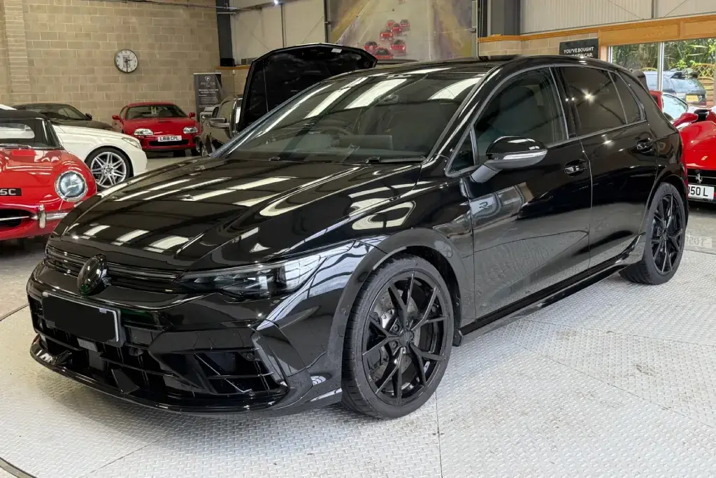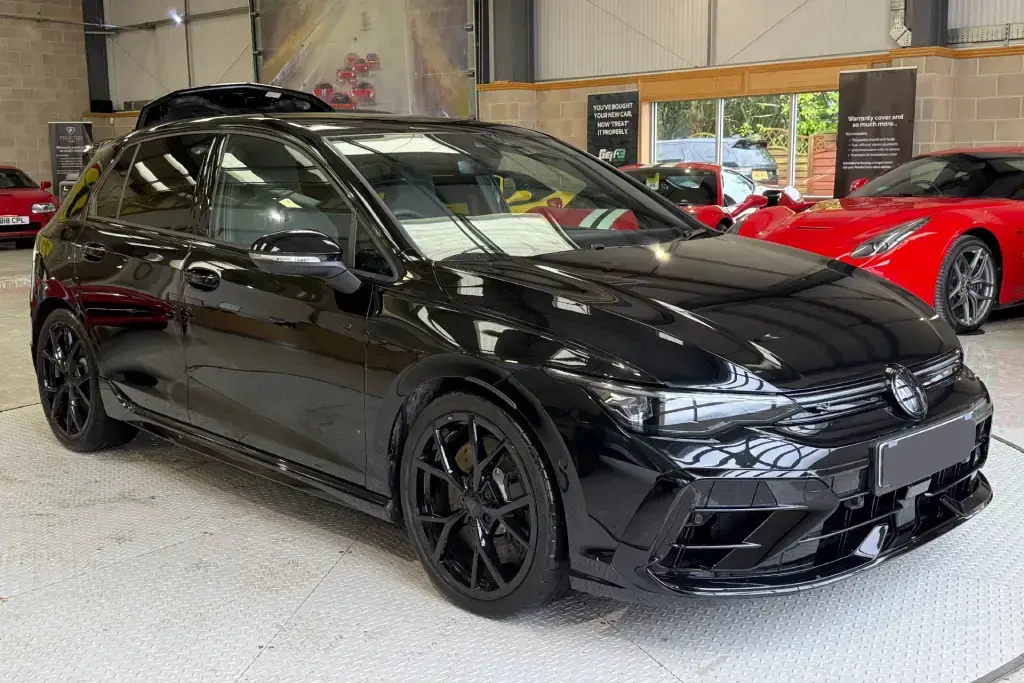 2025 75 Volkswagen Golf 2.0 TSI R Black Edition DSG 4Motion Euro 6 (s/s) 5dr finished in Grenadilla Black Metallic accompanied by Black Cloth Upholstery.